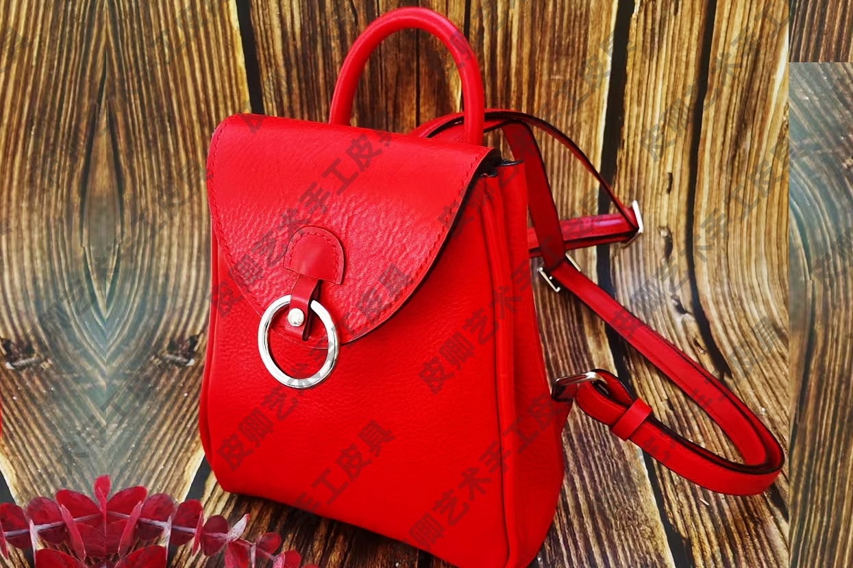 2、难度:这款双肩背包的难点在于全手缝的中间起鼓肩带与立体手挽的制作。肩带两侧的双线纯手工打孔手缝,需要耗费大量时间,并且要做成起鼓的工艺。手挽需要进行填芯工艺处理,没有热忱的爱好是无法做到精致无瑕的。